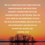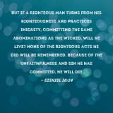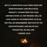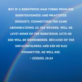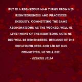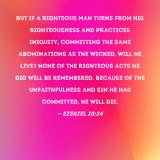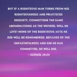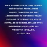 Pictures and Artwork But if a righteous man turns from his righteousness and practices iniquity, committing the same abominations as the wicked, will he live? None of the righteous acts he did will be remembered. Because of the unfaithfulness and sin he has committed, he will die. |