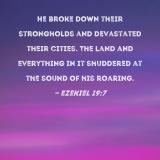 He broke down their strongholds and devastated their cities. The land and everything in it shuddered at the sound of his roaring.