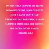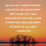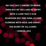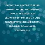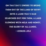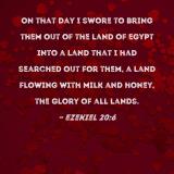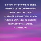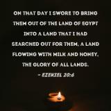 On that day I swore to bring them out of the land of Egypt into a land that I had searched out for them, a land flowing with milk and honey, the glory of all lands.