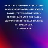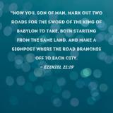 "Now you, son of man, mark out two roads for the sword of the king of Babylon to take, both starting from the same land. And make a signpost where the road branches off to each city.
