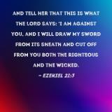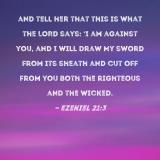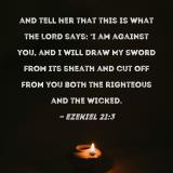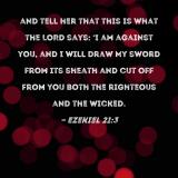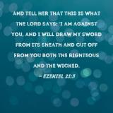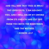 and tell her that this is what the LORD says: 'I am against you, and I will draw My sword from its sheath and cut off from you both the righteous and the wicked.