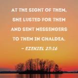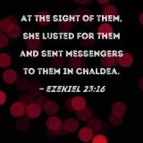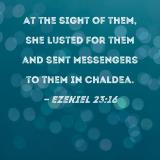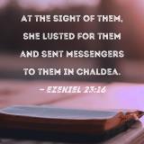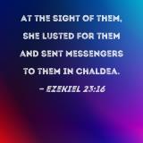 At the sight of them, she lusted for them and sent messengers to them in Chaldea.