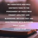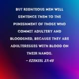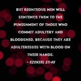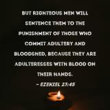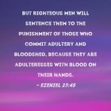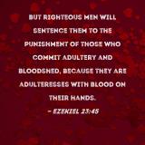 But righteous men will sentence them to the punishment of those who commit adultery and bloodshed, because they are adulteresses with blood on their hands.