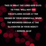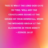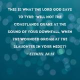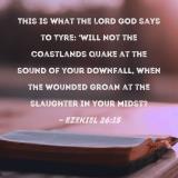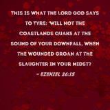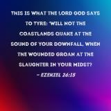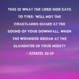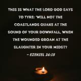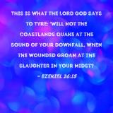 This is what the Lord GOD says to Tyre: 'Will not the coastlands quake at the sound of your downfall, when the wounded groan at the slaughter in your midst?