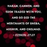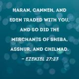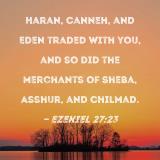 Haran, Canneh, and Eden traded with you, and so did the merchants of Sheba, Asshur, and Chilmad.
