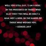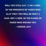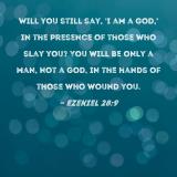 Will you still say, 'I am a god,' in the presence of those who slay you? You will be only a man, not a god, in the hands of those who wound you.