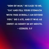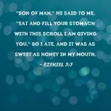 "Son of man," He said to me, "eat and fill your stomach with this scroll I am giving you." So I ate, and it was as sweet as honey in my mouth.