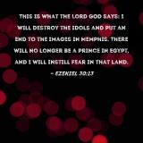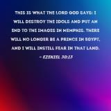 This is what the Lord GOD says: I will destroy the idols and put an end to the images in Memphis. There will no longer be a prince in Egypt, and I will instill fear in that land.