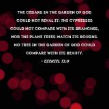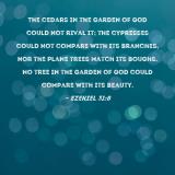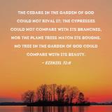 The cedars in the garden of God could not rival it; the cypresses could not compare with its branches, nor the plane trees match its boughs. No tree in the garden of God could compare with its beauty.
