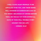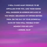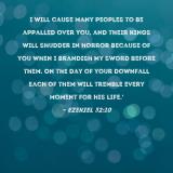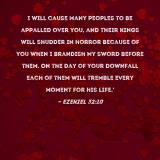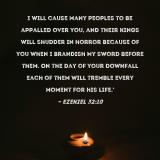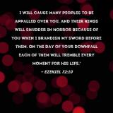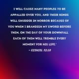 I will cause many peoples to be appalled over you, and their kings will shudder in horror because of you when I brandish My sword before them. On the day of your downfall each of them will tremble every moment for his life.'