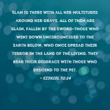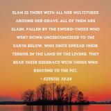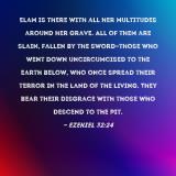 Pictures and Artwork Elam is there with all her multitudes around her grave. All of them are slain, fallen by the sword--those who went down uncircumcised to the earth below, who once spread their terror in the land of the living. They bear their disgrace with those who descend to the Pit. |
