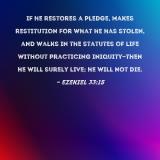 if he restores a pledge, makes restitution for what he has stolen, and walks in the statutes of life without practicing iniquity--then he will surely live; he will not die.