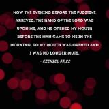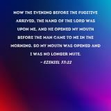Now the evening before the fugitive arrived, the hand of the LORD was upon me, and He opened my mouth before the man came to me in the morning. So my mouth was opened and I was no longer mute.