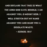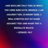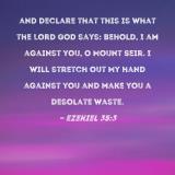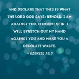 and declare that this is what the Lord GOD says: Behold, I am against you, O Mount Seir. I will stretch out My hand against you and make you a desolate waste.