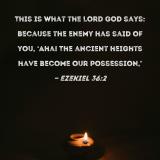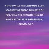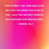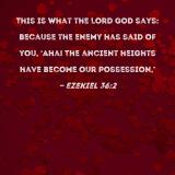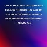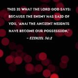This is what the Lord GOD says: Because the enemy has said of you, 'Aha! The ancient heights have become our possession,'