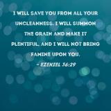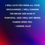 I will save you from all your uncleanness. I will summon the grain and make it plentiful, and I will not bring famine upon you.
