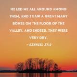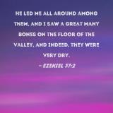He led me all around among them, and I saw a great many bones on the floor of the valley, and indeed, they were very dry.