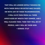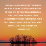 Pictures and Artwork They will no longer defile themselves with their idols or detestable images, or with any of their transgressions. I will save them from all their apostasies by which they sinned, and I will cleanse them. Then they will be My people, and I will be their God. |