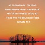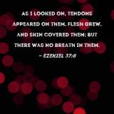 As I looked on, tendons appeared on them, flesh grew, and skin covered them; but there was no breath in them.
