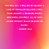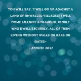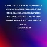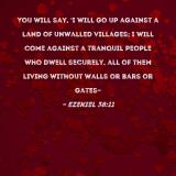 You will say, 'I will go up against a land of unwalled villages; I will come against a tranquil people who dwell securely, all of them living without walls or bars or gates--