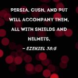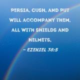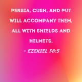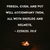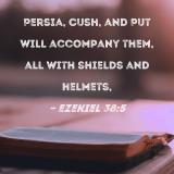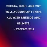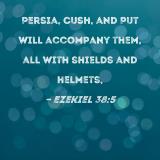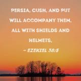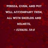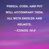Persia, Cush, and Put will accompany them, all with shields and helmets,