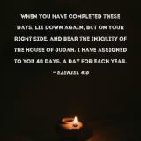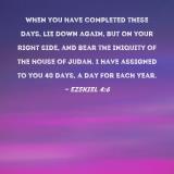 When you have completed these days, lie down again, but on your right side, and bear the iniquity of the house of Judah. I have assigned to you 40 days, a day for each year.