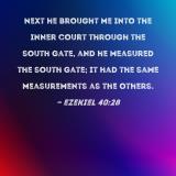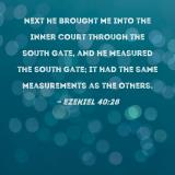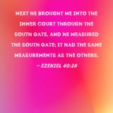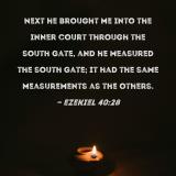 Next he brought me into the inner court through the south gate, and he measured the south gate; it had the same measurements as the others.