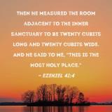 Then he measured the room adjacent to the inner sanctuary to be twenty cubits long and twenty cubits wide. And he said to me, "This is the Most Holy Place."