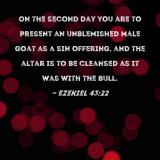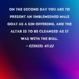On the second day you are to present an unblemished male goat as a sin offering, and the altar is to be cleansed as it was with the bull.