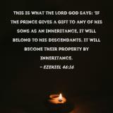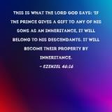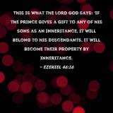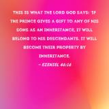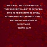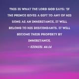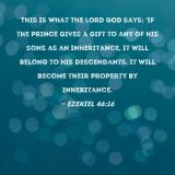 This is what the Lord GOD says: 'If the prince gives a gift to any of his sons as an inheritance, it will belong to his descendants. It will become their property by inheritance.