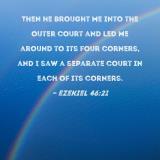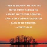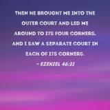 Then he brought me into the outer court and led me around to its four corners, and I saw a separate court in each of its corners.