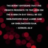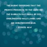 The burnt offering that the prince presents to the LORD on the Sabbath day shall be six unblemished male lambs and an unblemished ram.