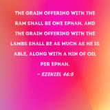 The grain offering with the ram shall be one ephah, and the grain offering with the lambs shall be as much as he is able, along with a hin of oil per ephah.