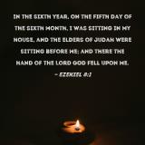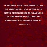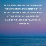 In the sixth year, on the fifth day of the sixth month, I was sitting in my house, and the elders of Judah were sitting before me; and there the hand of the Lord GOD fell upon me.