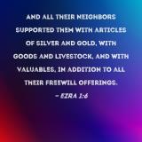 And all their neighbors supported them with articles of silver and gold, with goods and livestock, and with valuables, in addition to all their freewill offerings.