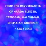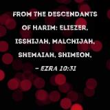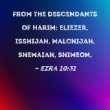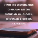 From the descendants of Harim: Eliezer, Isshijah, Malchijah, Shemaiah, Shimeon,