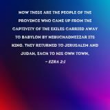 Now these are the people of the province who came up from the captivity of the exiles carried away to Babylon by Nebuchadnezzar its king. They returned to Jerusalem and Judah, each to his own town,