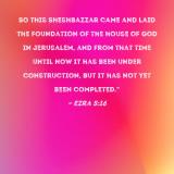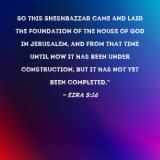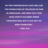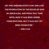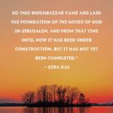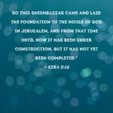 So this Sheshbazzar came and laid the foundation of the house of God in Jerusalem, and from that time until now it has been under construction, but it has not yet been completed."
