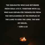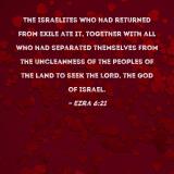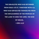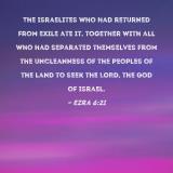 The Israelites who had returned from exile ate it, together with all who had separated themselves from the uncleanness of the peoples of the land to seek the LORD, the God of Israel.