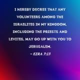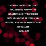 I hereby decree that any volunteers among the Israelites in my kingdom, including the priests and Levites, may go up with you to Jerusalem.