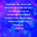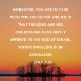 Moreover, you are to take with you the silver and gold that the king and his counselors have freely offered to the God of Israel, whose dwelling is in Jerusalem,