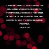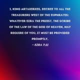 I, King Artaxerxes, decree to all the treasurers west of the Euphrates: Whatever Ezra the priest, the scribe of the Law of the God of heaven, may require of you, it must be provided promptly,