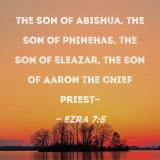 the son of Abishua, the son of Phinehas, the son of Eleazar, the son of Aaron the chief priest--