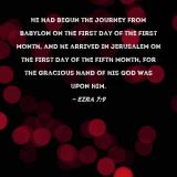He had begun the journey from Babylon on the first day of the first month, and he arrived in Jerusalem on the first day of the fifth month, for the gracious hand of his God was upon him.