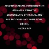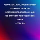 also Hashabiah, together with Jeshaiah, from the descendants of Merari, and his brothers and their sons, 20 men.