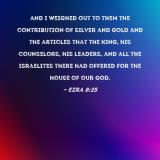and I weighed out to them the contribution of silver and gold and the articles that the king, his counselors, his leaders, and all the Israelites there had offered for the house of our God.