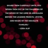 Guard them carefully until you weigh them out in the chambers of the house of the LORD in Jerusalem before the leading priests, Levites, and heads of the Israelite families."