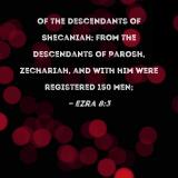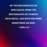 of the descendants of Shecaniah; from the descendants of Parosh, Zechariah, and with him were registered 150 men;