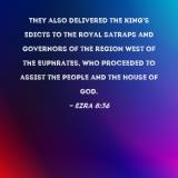 They also delivered the king's edicts to the royal satraps and governors of the region west of the Euphrates, who proceeded to assist the people and the house of God.