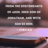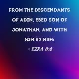 from the descendants of Adin, Ebed son of Jonathan, and with him 50 men;